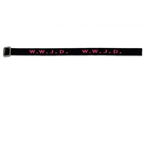 BRACELET TISSE W.W.J.D. NOIR-ROSE FLUO